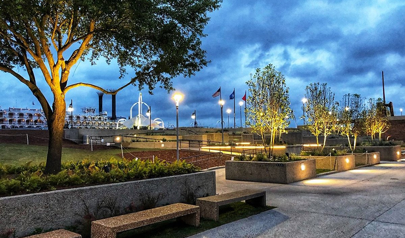 Located in downtown Baton Rouge, this outdoor greenspace sits on the edge of the Mississippi. Take a walk around to get a view of the river and feel the breeze!